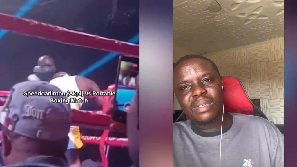 Suddenly, with a swift jab, Speed Darlington landed a powerful punch that sent Portable reeling.
