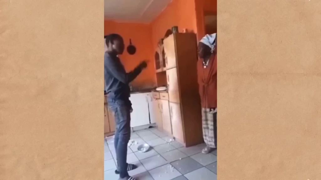 The video captured a shocking scene: Luvo Ngqaza, a young man, was seen assaulting his grandmother over a trivial matter concerning food.